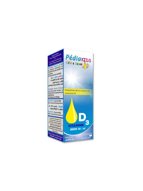 Pédiakids Vitamine D3 optimise les apports en vitamine D, qui contribue à l’absorption du calcium et au capital osseux.