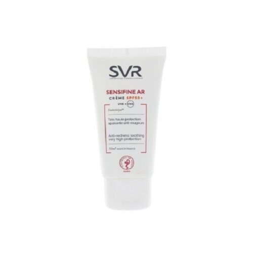 SVR Sensifine AR Crème SPF50+ 50 ml est une très haute protection solaire (filtres UVA et UVB) apaisante anti-rougeurs qui protège, hydrate et apaise.